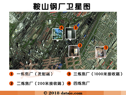 3. 距离200米和1000米,其间有焦炉和厂房遮挡。