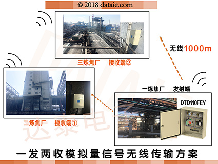 一炼焦厂有四路模拟量信号,需要同时传输到200米和1000米以外的二炼焦厂和三炼焦厂的无纸记录仪上。