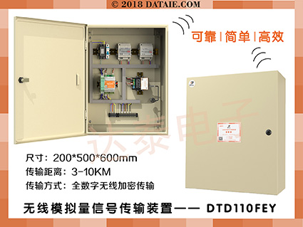 DTD110FEY由无线发射终端和无线接收终端组成,发射端采集工业现场的变送器输出的标准4~20mA电流信号并通过无线方式传送,远端输出2线制或3线制4~20mA电流信号,可以接入显示仪表、PLC或DCS等设备。无线可靠传输距离可达3~10公里。既可以实现点对点通信,也适合于点对多点而且分散不便于挖沟布线等应用场合,不需要编写程序,不需要布线,一般电工就可以调试使用。